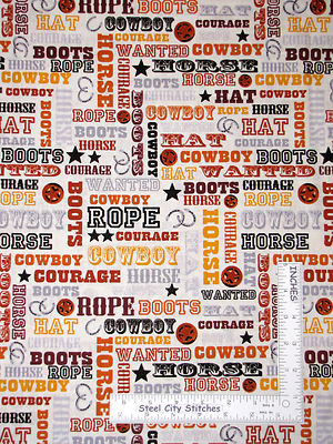 Cowboy Western Words Hat Rope Horse Cotton Fabric Penny Rose Sundown Yard Ebay